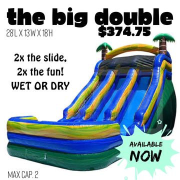 Double the fun with our bounce house slide combos! Jump, bounce, and slide all in one exciting unit - some can also be used as a water slide for extra splashy fun! Perfect for birthdays, summer parties, and outdoor events. These combos keep the energy high and the smiles big!
